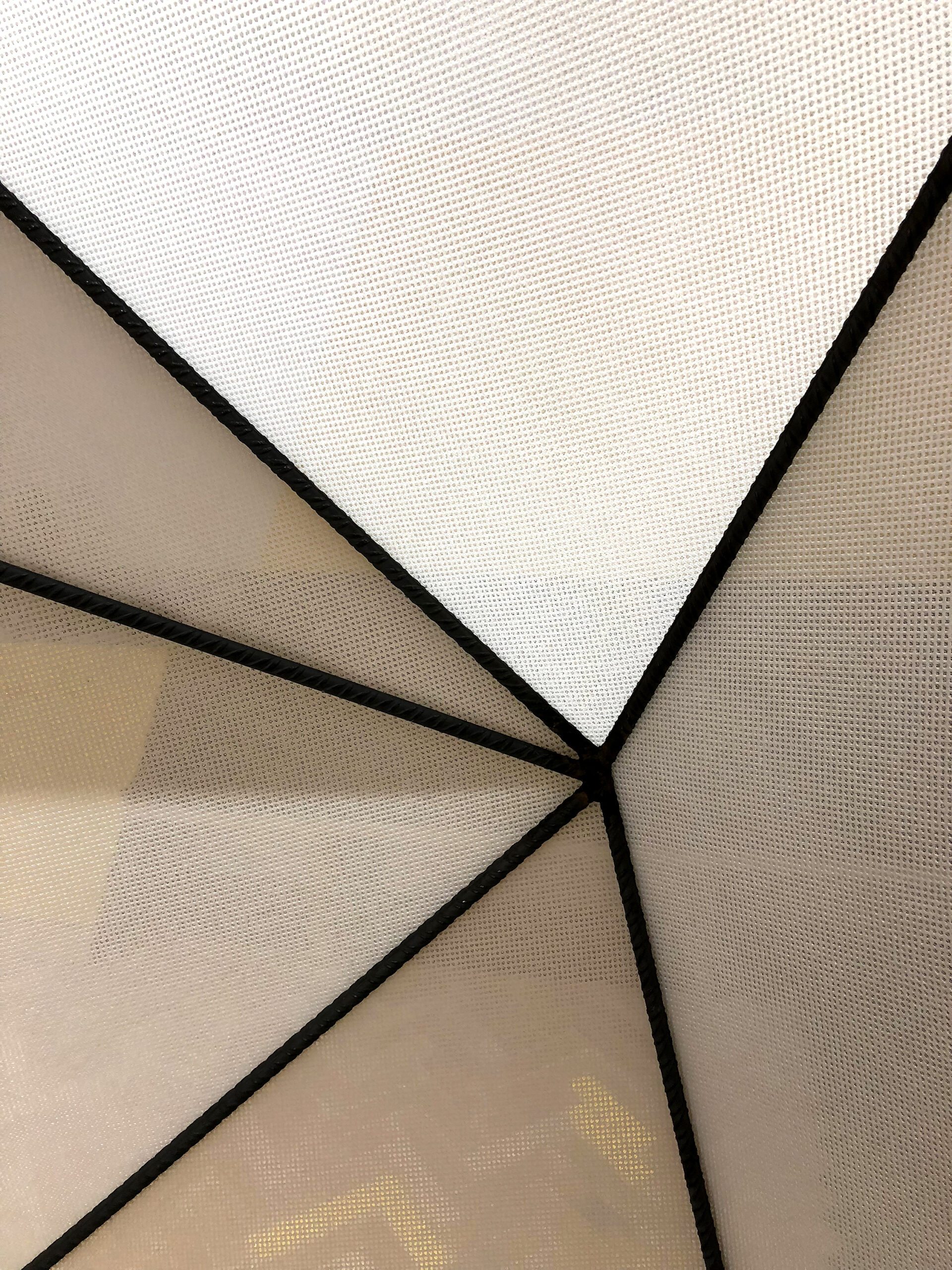 En el centro del estudio, la sala de reuniones se sitúa bajo una estructura de madera con forma de casita, generada a partir de una geometría voronoi que actúa como filtro y refugio.